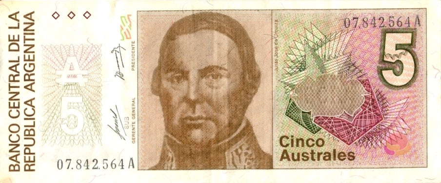 5 AUSTRALES "JUSTO JOSÉ DE URQUIZA" · Argentina · 1986/1989